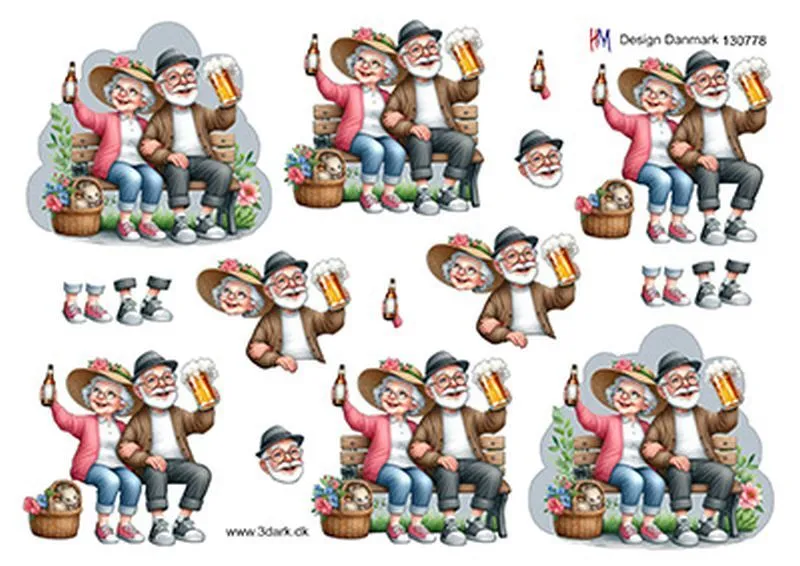3D ark HM-design Ældre par på bænk med øl