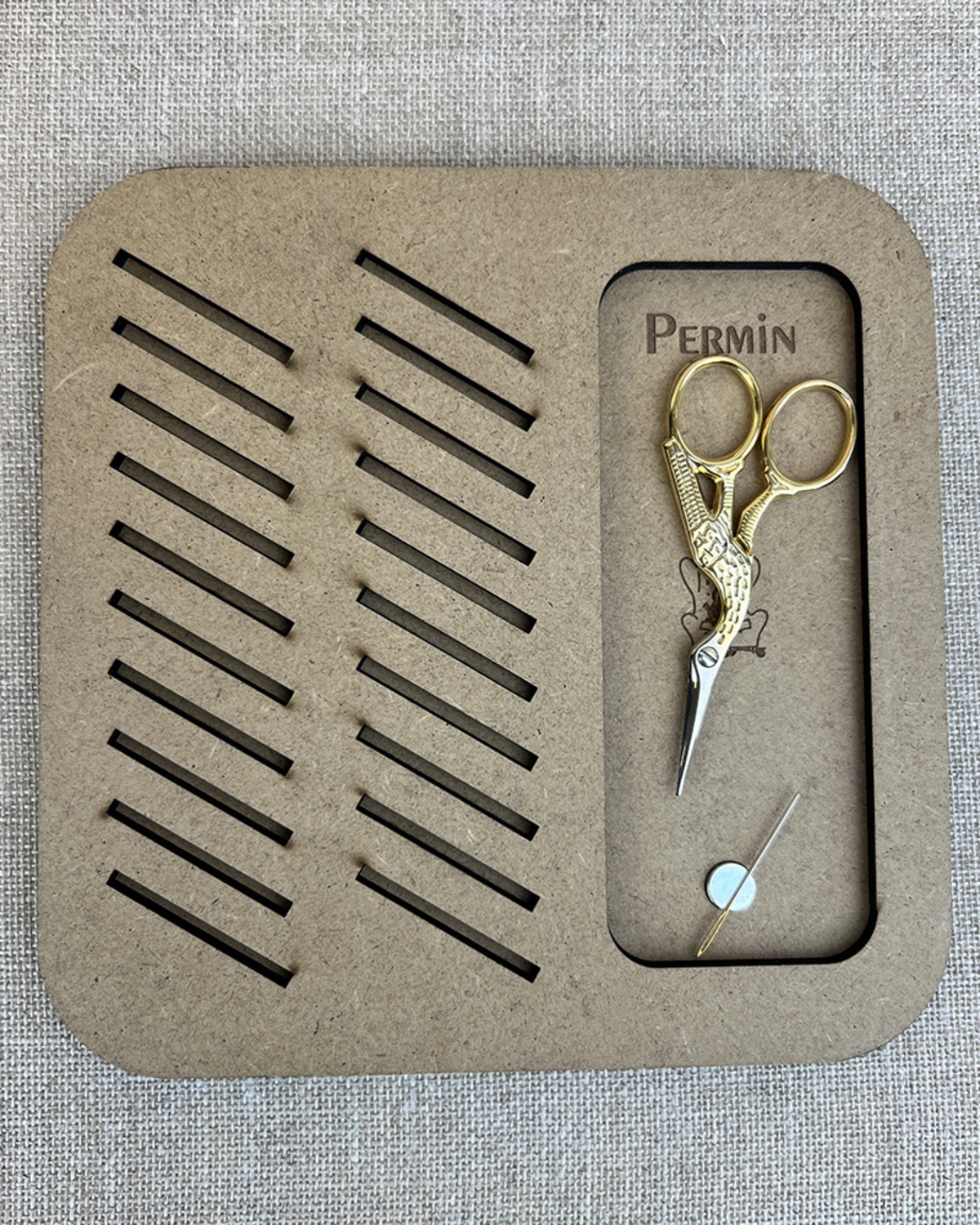 Lækkert borddisplay til at organisere broderigarnet. Plads til 20 kort (art. 860021) Rum med plads til saks og med magnet til at holde styr på broderinålen.