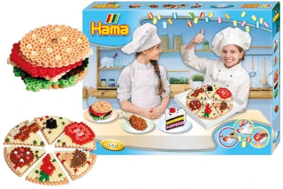 Æsken indholder Ca. 4.000 perler, 2 firkantede plader nr. 220, 1 stor rund nr. 221, 2 connectors, motivark, vejledning og strygepapir.