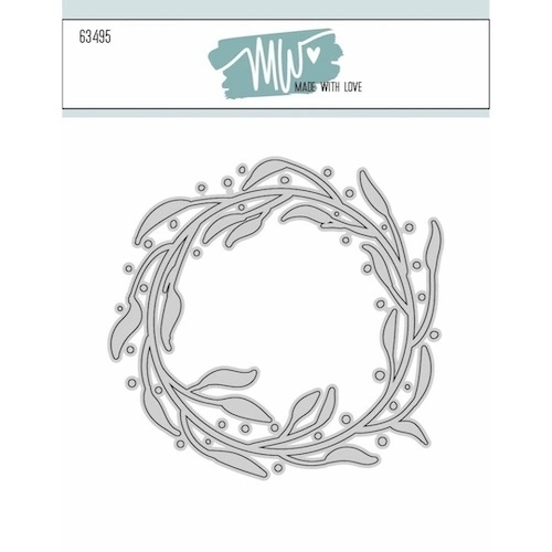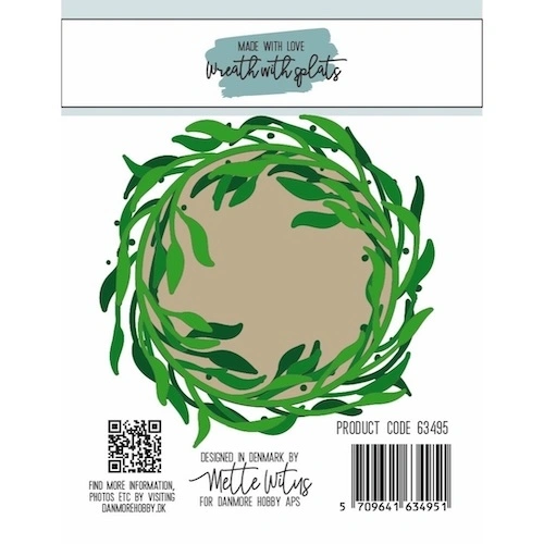 Wreath with splats fra Made With Love indeholder 1 dies med en bladkrans omgivet af små prikker. Brug kransen for sig selv, med de små prikker - eller udnyt "resterne"/det negative skær for at få prikkerne med imellem bladene. Kransen måler ca. 9,2x8,9 cm