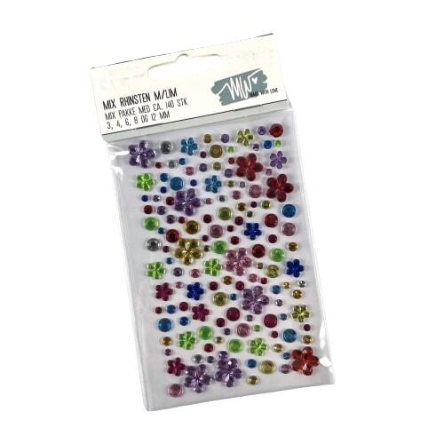 Rhinsten selvklæb. mix str. Blomst m.m.