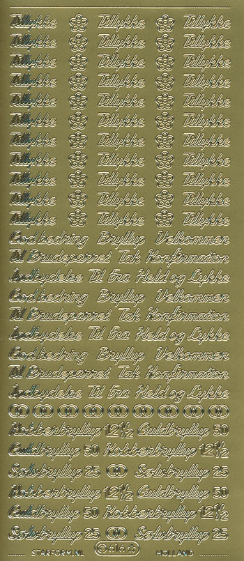 Stickers Tillykke og diverse begivenheder 616 guld tekst Starform